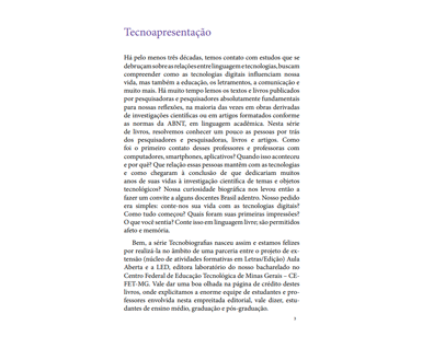 A série Tecnobiografias resulta de reflexões e diálogos que o projeto de extensão Aula Aberta, ligado ao Departamento de Linguagem e Tecnologia do CEFET-MG, estabeleceu com pesquisadoras e pesquisadores de todo o Brasil sobre nossas relações com as tecnologias digitais, em especial durante a pandemia. Organizada pela profa. Ana Elisa Ribeiro e pela mestranda Alícia Teodoro, a série apresenta textos curtos e leves escritos por convidados, buscando trazer à luz as primeiras experiências desses professores e professoras com as Tecnologias Digitais da Informação e da Comunicação (TDIC). As autoras e os autores exploram suas memórias e respondem, com muita leveza e afeto, como tudo começou, qual foi a sensação do primeiro contato com computadores, impressoras, televisão e outros recursos tecnológicos. Neste volume, o terceiro da série, a professora Carla Viana Coscarelli, da Faculdade de Letras da Universidade Federal de Minas Gerais (UFMG), nos conta como desenvolveu sua relação com as tecnologias digitais e como se tornou a grande pesquisadora que é.
