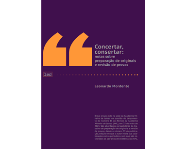 Leonardo Mordente é mineiro de Belo Horizonte. Em 2003, bacharelou-se em Letras (Faculdade de Letras/UFMG) e, em 2016, especializou-se em Artes Plásticas e Contemporaneidade (Escola Guignard/ UEMG). Atualmente, cursa pós-graduação em Produção Editorial (LabPub). Exerce o ofício de revisor há mais de vinte anos, período em que também vem fazendo incursões por outros âmbitos do universo editorial, tais como a tradução (chinês, italiano, espanhol e inglês), a edição e o design editorial. É o atual responsável pela preparação de originais e revisão de provas da Revista da Academia Mineira de Letras, bem como pela editoração eletrônica do periódico.