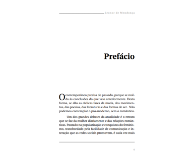 “O contemporâneo precisa do passado, porque se molda às conclusões do que veio anteriormente. Desta forma, se dão as cíclicas fases da moda, dos movimentos, das poesias, das literaturas e das formas de ser. Não podemos contemplar o pós-moderno sem o romântico.” (extraído do Prefácio)
