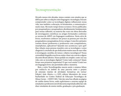 A série Tecnobiografias resulta de reflexões e diálogos que o projeto de extensão Aula Aberta, ligado ao Departamento de Linguagem e Tecnologia do CEFET-MG, estabeleceu com pesquisadoras e pesquisadores de todo o Brasil sobre nossas relações com as tecnologias digitais, em especial durante a pandemia. Organizada pela profa. Ana Elisa Ribeiro e pela mestranda Alícia Teodoro, a série apresenta textos curtos e leves escritos por convidados, buscando trazer à luz as primeiras experiências desses professores e professoras com as Tecnologias Digitais da Informação e da Comunicação (TDIC). As autoras e os autores exploram suas memórias e respondem, com muita leveza e afeto, como tudo começou, qual foi a sensação do primeiro contato com computadores, impressoras, televisão e outros recursos tecnológicos. Neste primeiro volume, a professora Vera Lúcia Menezes de Oliveira e Paiva, da Faculdade de Letras da Universidade Federal de Minas Gerais (UFMG), nos conta como teve contato com computadores e os transformou em seu assunto ao longo de décadas.