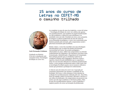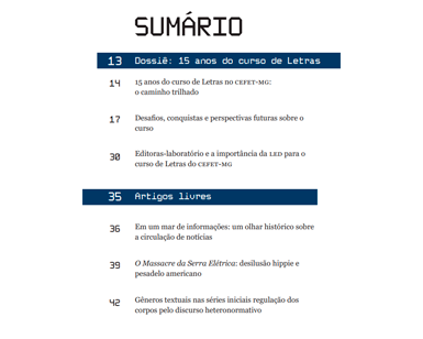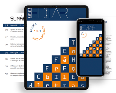 A edição 18.1 da Revista Editar foi produzida por estudantes da disciplina de Processos de Edição II, do segundo e quinto período do curso de Letras: Tecnologias de Edição do CEFET-MG, sob a supervisão do prof. Mário Vinícius. O periódico é um projeto idealizado pelo prof. Rogério Barbosa e, atualmente, integra o catálogo da Led. Com uma temática que varia a cada semestre, a Revista Editar se destaca pela diversidade de gêneros textuais, incluindo crônicas, poemas, ensaios e artigos, além de fotografias. O presente número presta uma homenagem especial aos 15 anos do curso de Letras, celebrando a sua história e a sua produção acadêmica.